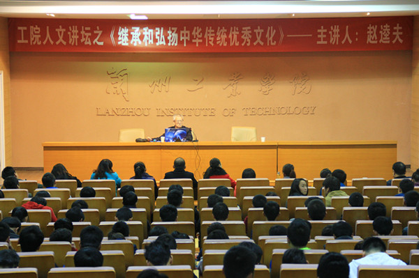 赵逵夫从毛泽东《新民主主义论》讲起,用诙谐的比喻告诉大家在继承中华传统文化的过程中,要汲取精华,去除糟粕,努力提高民族自信,多读文化元典(经典中的经典),多读名著。并以《礼记》为例,逐句解读,向同学们介绍了“尊老敬老”、“爱人以德”、“丧礼敬上”、“好乐好礼”、“言行相顾”、“贵人贱禄”、“积而能散”、“尊道任能”、“张弛有度”、“忠信义理”、“以和为贵”、“谦以待人”、“礼从宜俗”等原始儒家思想,用鲜活的事例告诉学子应在学习之余读一些文学作品,从文学作品中认识古今社会,了解历史上各方面的经验教训,避免前人犯过的错误,继承优秀文化遗产,铸造伟大的民族精神。赵逵夫深入浅出、严谨而又不失生动的讲解,使在场师生深切感受到了中国古代文化的魅力。现场师生非常珍惜这个来之不易的学习机会,认真聆听、积极提问。讲座在热烈的掌声中圆满结束。