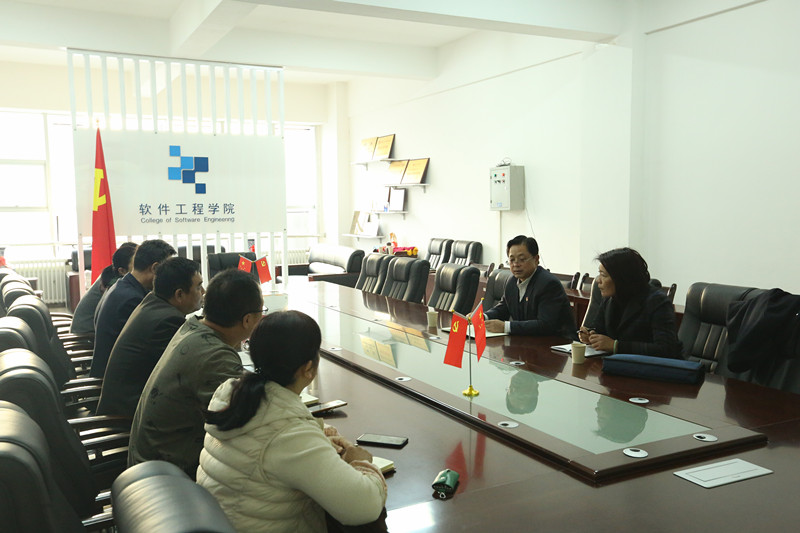 2018年12月4日下午,党委副书记黄荟铭在发展规划处处长朱玉红陪同下,深入软件工程学院进行调研。学院党委书记赵亚明、院长李向伟、副院长辛欢、郑刚以及院办、学工办相关人员参加。