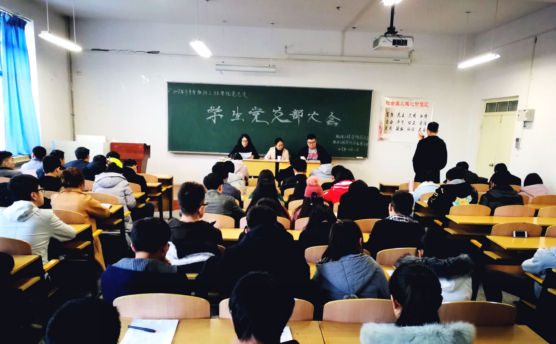 2017年12月2日,软件工程学院党总支学生党支部在四教A202召开了支部大会。参加本次大会的有软件工程学院学生第一党支部书记辛欢老师,软件工程学院学生第二党支部书记陆娜老师以及全体在校学生党员、预备党员和预备党员发展对象,大会由我院第一学生党支部宣传委员薛冬主持。