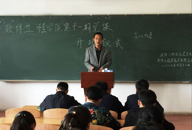 2017年4月11号下午2点,在四教A202举行了软件工程学院第十一期党课开班仪式。软件工程学院党总支书记赵亚明老师,第十一期党课培训人员参加了本次开班仪式。
