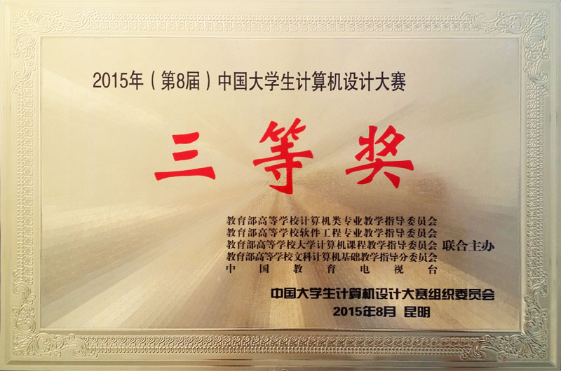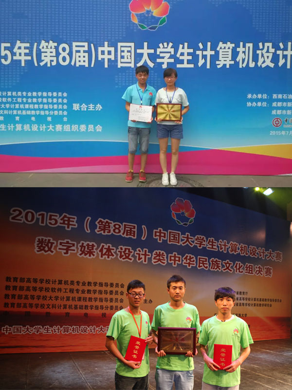 2015年(第八届)中国大学生计算机设计大赛数字媒体组及传统民族文化组全国总决赛于7月下旬,分别在成都和昆明举行了两大项目现场竞赛。本届大赛由教育部高等学校计算机类专业教学指导委员会、软件工程专业教学指导委员会、大学计算机课程教学指导委员会、文科计算机基础教学指导分委员会、中国教育电视台联合主办的,共有来自来全国200多所本科院校500多件作品参赛。