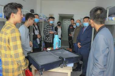 9月12日晚,学院2020级本科生报到注册工作已经完成。学院领导、新生班主任及辅导员分别前往学生公寓对2020级新生宿舍进行了走访。每走进一间新生宿舍,院领导仔细察看学生们的生活环境,与大家亲切交谈,了解同学们的基本信息,叮嘱同学们在生活或学习上遇到困难要及时向班主任老师反映,学院一定会尽力满足同学们的需求,为同学们营造良好的学习和生活环境。面对老师的亲切关怀,同学们表示在新阶段的学习生活中将勤勉努力,全面发展,以期早日成才。