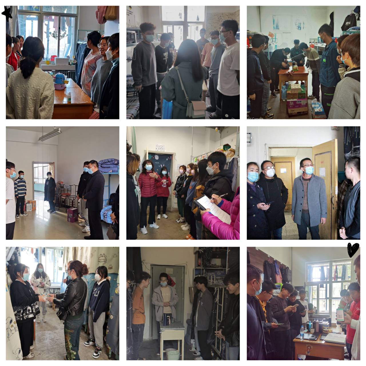 疫情就是命令,防控就是责任。2021年10月24日上午,计算机与人工智能学院党政领导、全体辅导员、班主任深入学生宿舍,看望慰问学院学生,为学生送去常用药品、生活用品等。慰问中,老师们向同学们详细解读了学校疫情防控的各项措施,希望大家积极配合学校的疫情防控工作,要做到勤洗手、戴口罩、多通风、少聚集,走出宿舍,走向操场,多做户外活动,提高身体素质,共抗疫情。仔细询问封校期间同学们线上教学、日常生活的基本情况,希望同学们能够积极向学院反映存在的各种问题,保持畅通的沟通渠道,学校会第一时间予以解决,帮助大家共克时艰。