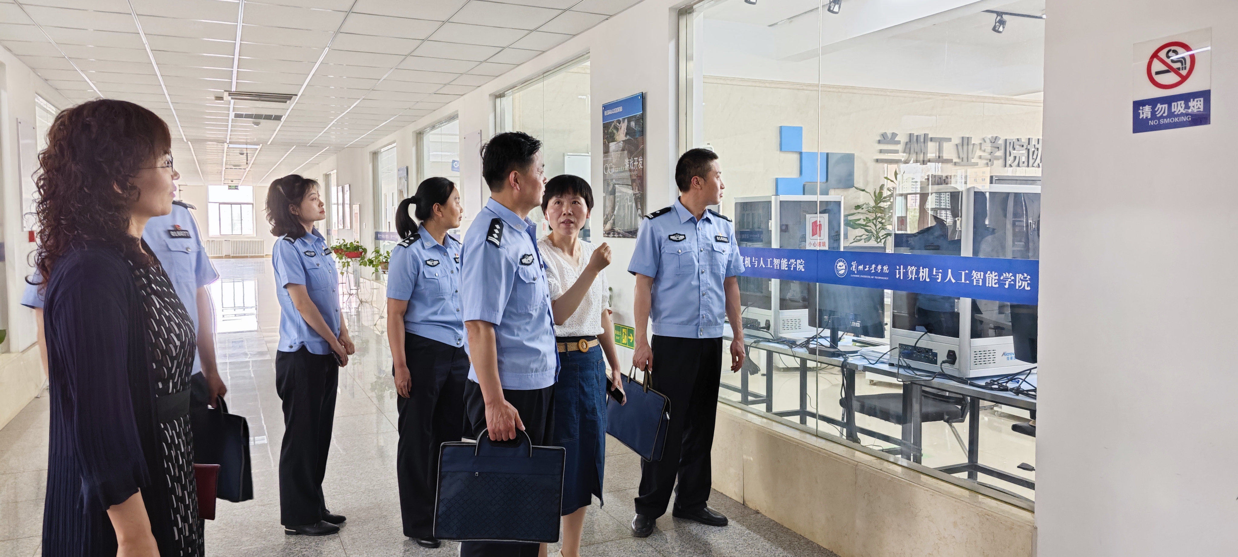 6月7日下午,计算机与人工智能学院教工支部与七里河公安分局刑侦五大队党支部举行支部结对共建活动。七里河公安分局反诈中心主任、党支部书记马孝林,反诈中心教导员、党支部副书记罗君等6名警官,学院党委委员、教工党员及相关专业教师代表等参加了此次支部结对共建活动。