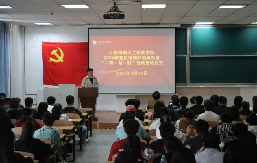4月16日,计算机与人工智能学院在四教C201举行2024年党员培训开班典礼暨“一带一联一帮”活动启动仪式。学院班子成员,全体师生党员、宿舍舍长及学生代表共计100余人参加会议,学院党委副书记、副院长牛雅莉主持会议。