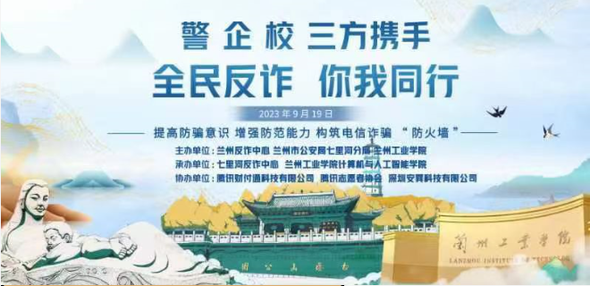 此次活动由兰州反诈中心、兰州市公安局七里河区分局、兰州工业学院主办,七里河反诈中心和计算机与人工智能学院承办,腾讯财付通科技有限公司、腾讯志愿者协会、深圳安巽科技有限公司协办。