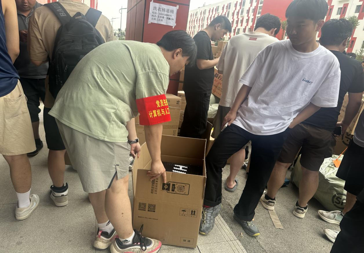 毕业生离校期间,学院党员志愿者佩戴标识,顶着烈日坚守宿舍区“疏导岗”,引导毕业生及家长有序通行,及时疏通临时拥堵路段,为毕业季出行筑牢安全防线;学院在2号、6号和8号公寓一楼设立“一站式服务点”,整合多项业务指引,党员志愿者提前梳理材料清单、制作清晰流程图,帮助毕业生快速完成材料核对与提交;“爱心搬运队”携带平板车等工具穿梭于宿舍楼间,细心打包易碎物品,接力搬运沉重行李。党员们以耐心的解答、忙碌的身影,将责任与担当融入每一项服务细节,用实际行动践行初心使命,让党旗在毕业季一线高高飘扬。