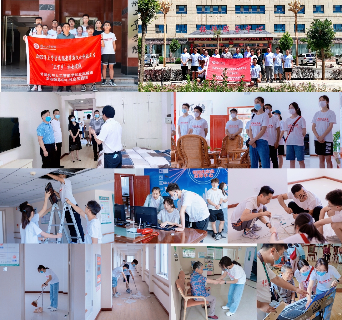“喜迎二十大· 永远跟党走·奋进新征程”,2022年7月1日至8日,计算机与人工智能学院组成师生共计12人的暑期社会发展成就观察团,在武威市辛业颐养中心开展了为期8天的2022年大学生暑期文化科技卫生“三下乡”社会实践活动。