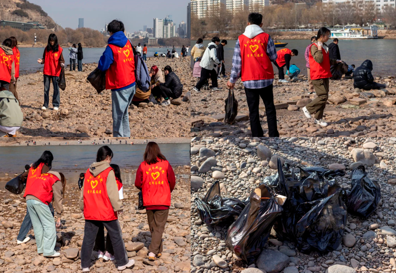 活动中,同学们手拿垃圾钳和垃圾袋,对黄河岸边进行了“地毯式清理”,捡拾藏匿在草丛、缝隙、角角落落深的塑料袋、包装纸、烟头、饮料瓶等,并进行了垃圾分类“各得其所”。同学们分工合作、相互配合,干劲十足,并向过往行人宣传垃圾分类的相关知识,用实际行动传递生态文明的理念,呼吁大家共同守护青山绿水,保护母亲河,建设美丽新兰州贡献青春力量。
