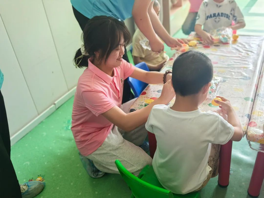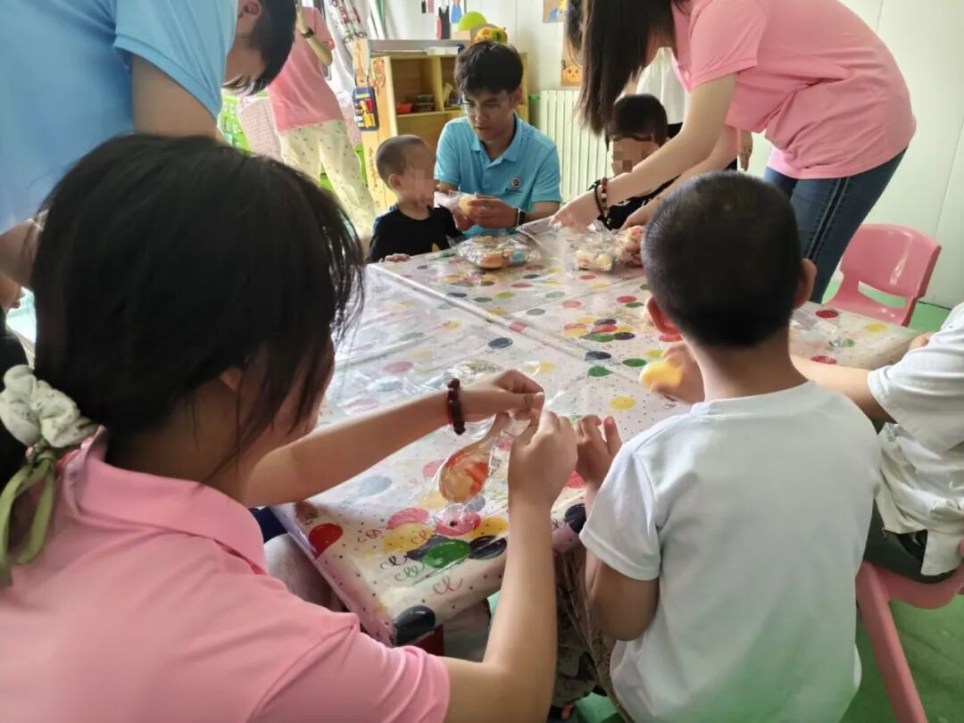 活动中,指导老师徐立龙与志愿者们一同将精心准备的礼物送到孩子们手中。五彩斑斓的绘本、益智玩具……每一件礼物都经过志愿者们的细心挑选,既贴合特殊儿童的康复训练需求,又充满童真与暖意。收到礼物的孩子们脸上露出腼腆又灿烂的笑容,有的用咿呀的声音表达感谢,有的主动拉起志愿者的手轻轻摇晃,简单的互动里满是信任与欢喜。