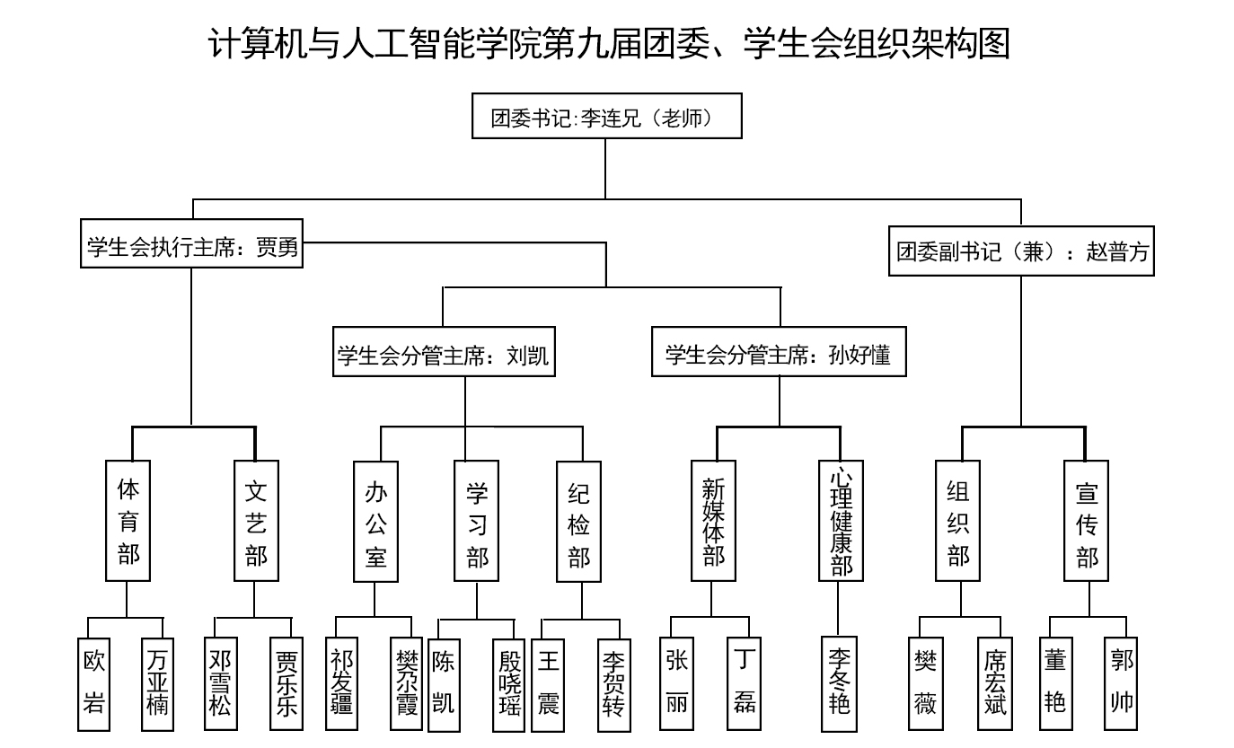 计算机与人工智能学院第九届团委、学生会架构图
