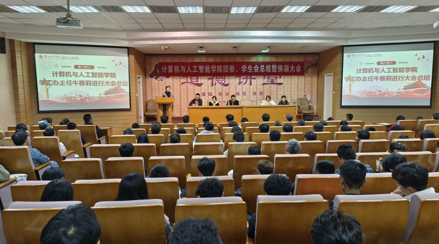 10月26日,计算机与人工智能学院在第四教学楼C301召开团委、学生会第十届总结大会暨第十一届换届大会,参加此次大会的有学工办全体老师,全体团委、学生会成员及大一年级各班班长。 大会伊始,徐立龙老师致开幕词,并对团委、学生会成员提出要求,希望能积极为学院学生服务,扎扎实实做事,多做造福于同学的事,担起责任,为我院增光添彩。 接着,由第十届团委、学生会学生干部代表张丽同学对过去一年的工作进行总结,同时建议学弟学妹们在今后的日常工作中应坚持自己“从学生中来,到学生中去”的初心,在生活中秉承“争做同学友,不做同学官”的原则完成相关工作。 然后,徐立龙老师宣读第十一届团委、学生会干部任命通知后,第十一届团委、学生会学生干部代表杨靖丽同学发言,团委、学生会成员将会以饱满的热情和积极的态度去对待工作,坚持“以身作则,服务同学”的宗旨,秉承历届所开创的,寻找历届所忽略的,承诺将认真履行职责,做好为学生服务的工作。