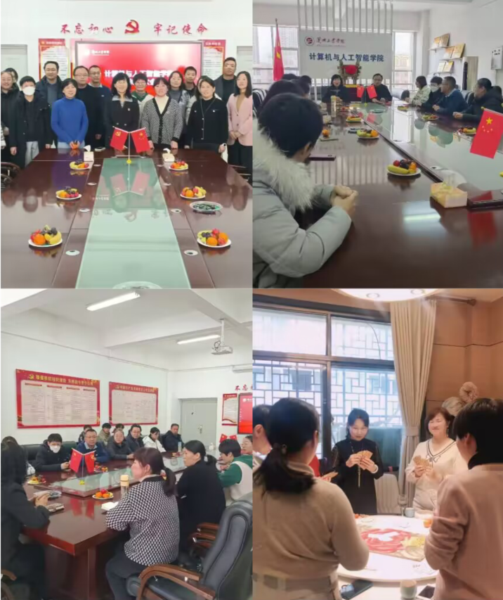 12月16日下午,计算机与人工智能学院分工会在学院会议室举办了年终联欢会,学院教职工参加了此次活动。张维玲书记首先代表学院党政组织向大家致辞,对全体教职工在2023年的辛勤工作和奉献精神表达了衷心的感谢,揭开了联欢会的序幕。紧接着老师们围绕教学、生活、健康等方面的话题开展了交流,在友好和谐的氛围中畅谈了教学体会、工作难点、学生状况、科研合作等细节,并展望了2024年新校区搬迁后的学院建设,表达了积极向上的工作态度和殷切希望。交流活动之后,根据自己的喜好,老师们在教研室、多媒体实验室、操场等地点开展了打牌、观影、健步走等活动,度过了轻松而愉快的周末时光。